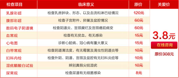 三、公益关爱:3.8元享原价308元女性健康体检