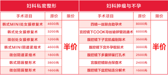 活动六、妇科微创手术费半价